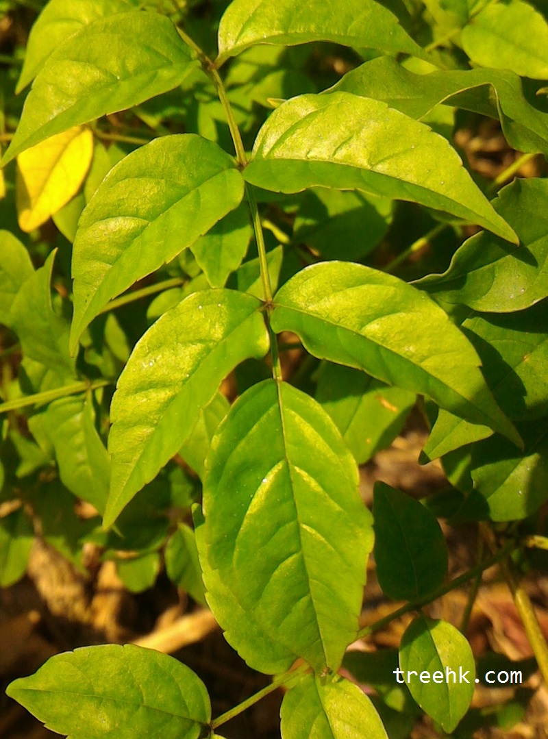 葉片柔軟靑綠,枝條和葉片對生,奇數羽狀複葉,小葉長卵形。