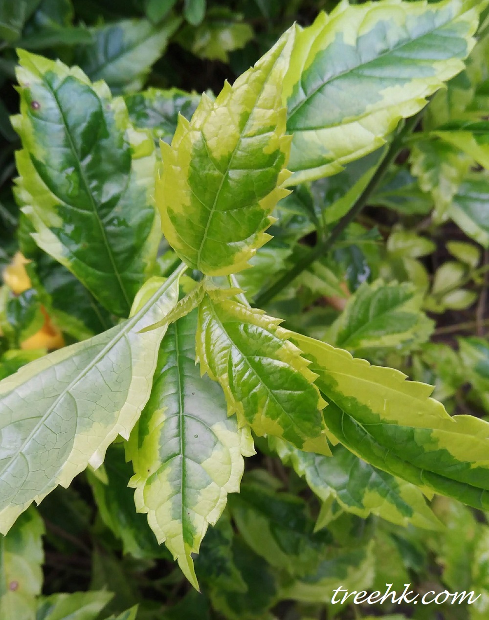 中文別名金露,黃邊金露華,黃邊假連翹,特別之處是葉邊緣金黃色有綠色斑塊。