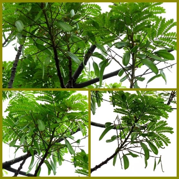 雙翼豆較粗糙有縱裂紋。 - 可以伸手踫複葉片,銀珠小葉較雙翼豆大,葉面較光亮。