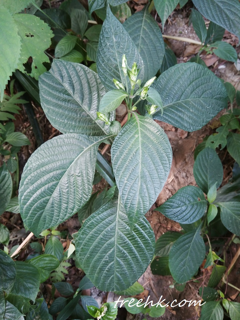 葉對生,具柄;葉片卵形或橢圓形,長9-20厘米,寬4-8厘米,側脈明顯每邊8-10條。