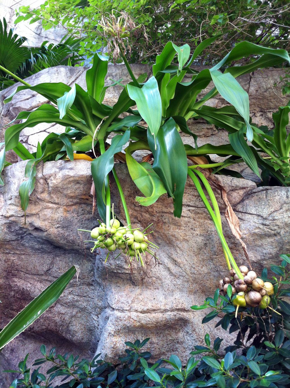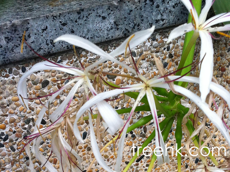那天在假石山旁,看到高高的掛著幾串球形的植物,細問下,原來是文殊蘭。名字雅緻,不過全株帶毒,鱗莖毒性較大,不可輕易採摘。奇怪的是他並不屬於蘭科,且是草本植物。
