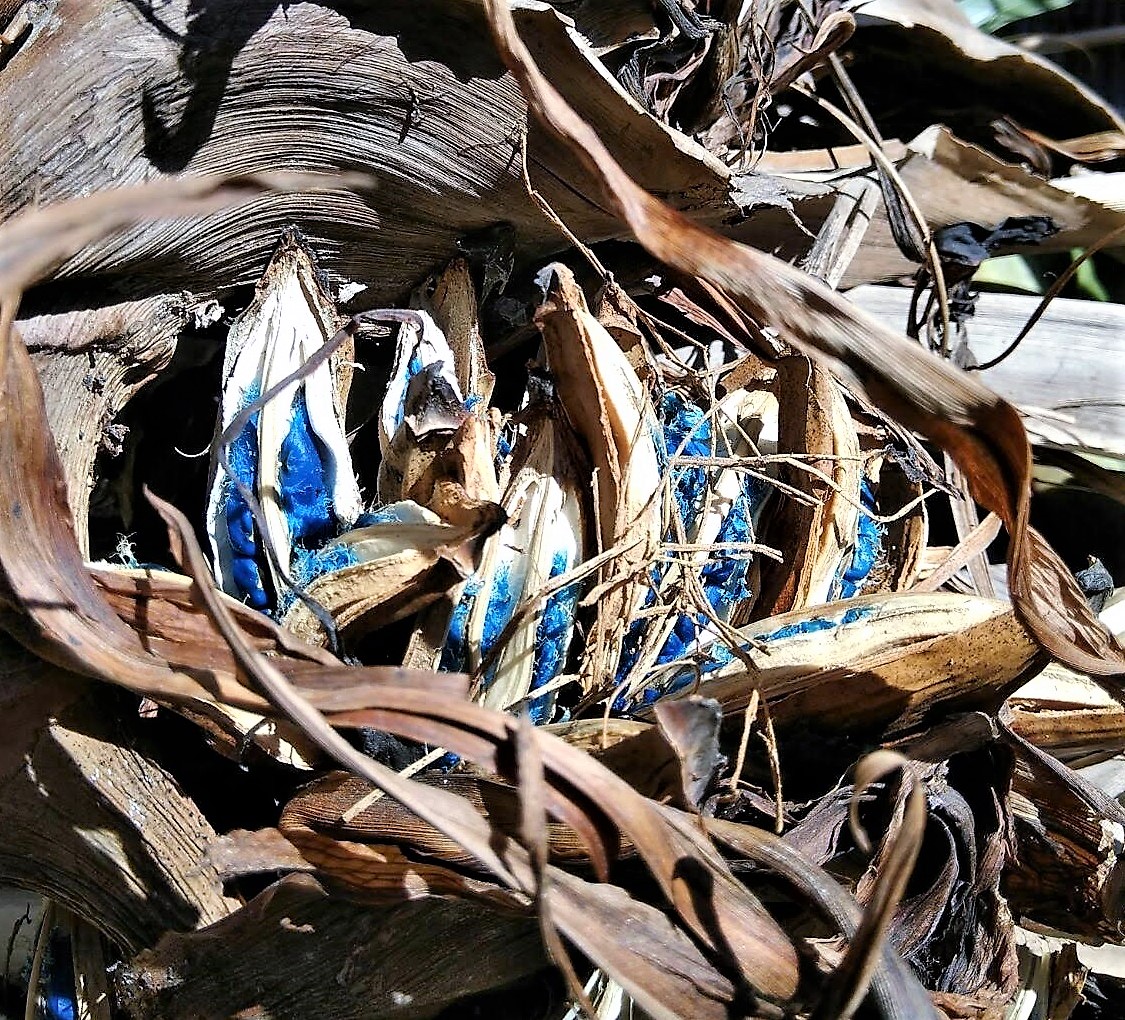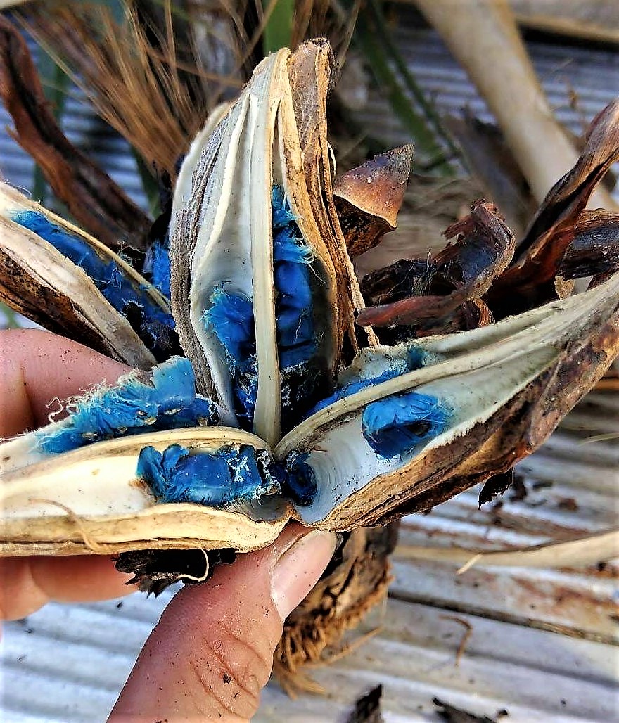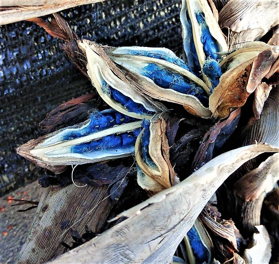 常見疑問草本植物 旅人蕉果實種子是怎麼樣 3 June, 2018 Samuel 披上藍鵲色外衣的旅人蕉果實 老友阿麟不時便分享一大堆植物照片過來,昨日當中有幾張旅人蕉的果實和種子。旅人蕉果為蒴果,先睹為快,大家也可以欣賞一下。也在此多謝阿麟!! 旅人蕉蒴果,果皮堅硬富含纖維質 – photo courtesy of LUN 種子腎形,最特別的是他披碧藍色撕裂狀假種皮,長約10-12厘米,寬約7-8毫米。 花序由葉腋出, 乾後像一堆荑草皮 旅人蕉果實種子