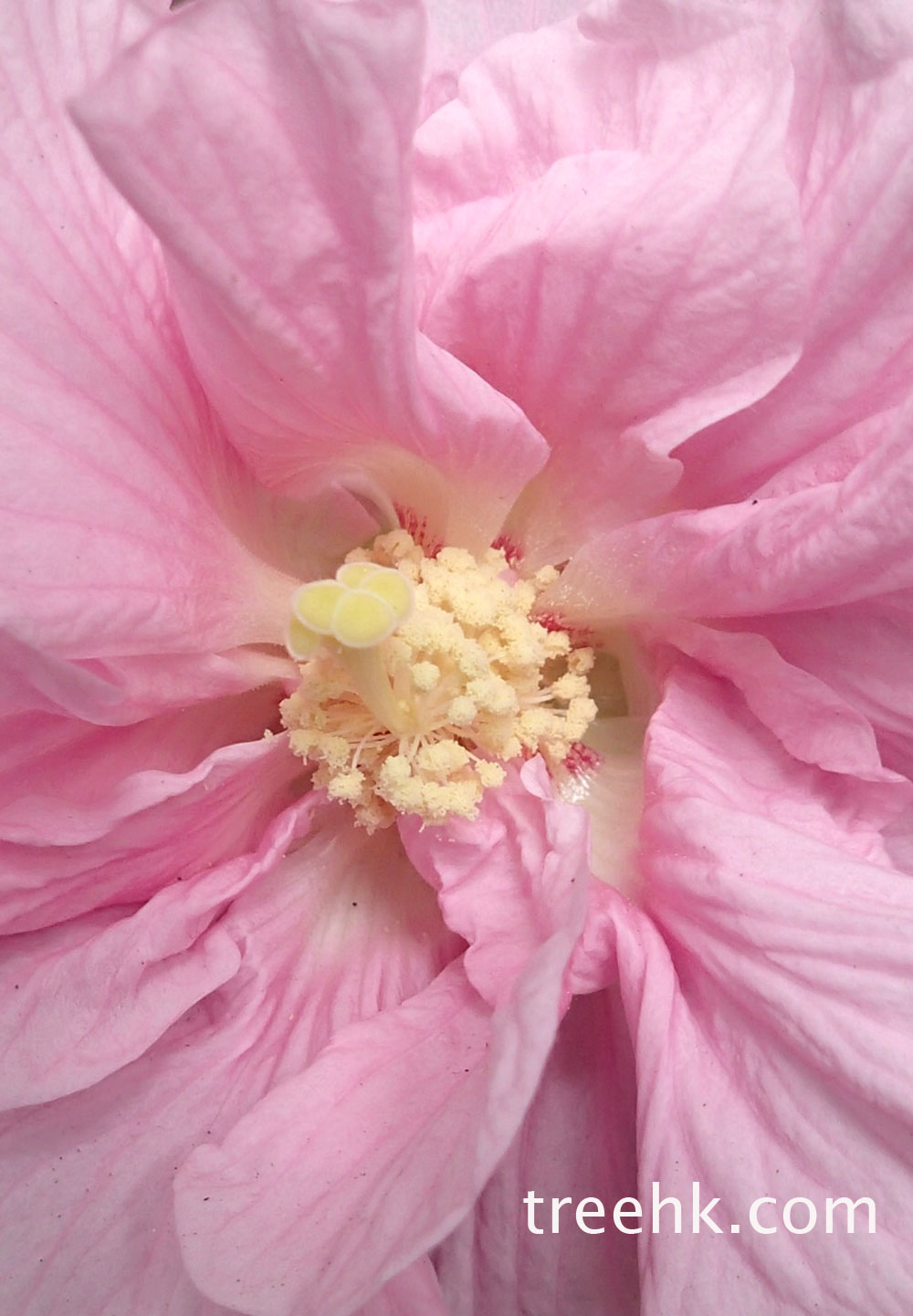 芙蓉看起來類似於大紅花, 因為他們屬於相同的锦葵科, 木芙蓉即芙蓉,又名木槿花, 拒霜花,不知是否很能耐霜?後來treehk.com考查一下, 找出原來蘇軾讚它為拒霜花,從他的和 ” 陳述古拒霜花” 詩中 :「千林掃作一番黃,只有芙蓉獨自芳。喚作拒霜知未稱,細思卻是最宜霜。」
