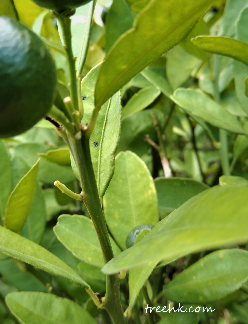 柑桔葉紙質,葉片面及底都有不明顯葉脈,葉面顏色光亮潤滑,底部偏灰,淡綠。