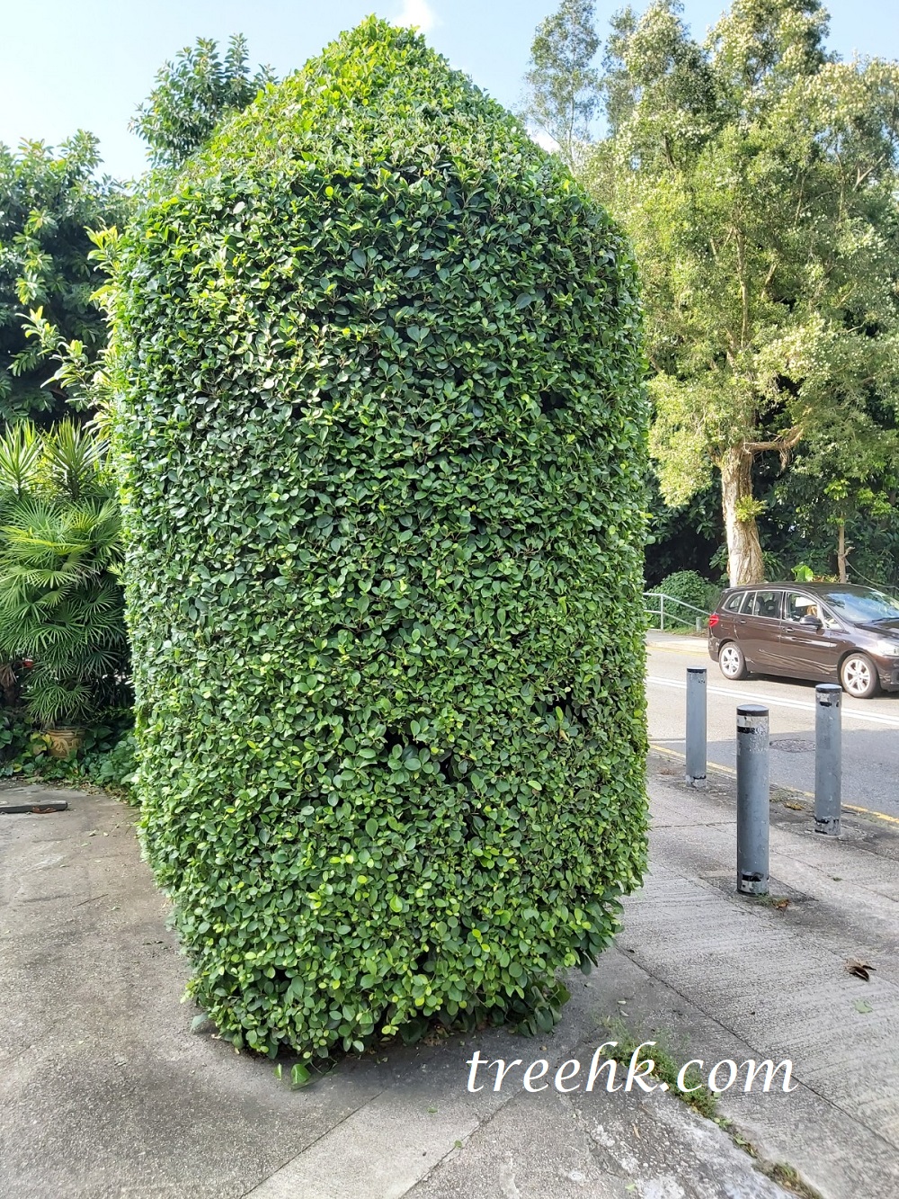幾年來每天都要經過這地方两次,都見到翠绿高場,火山榕可以說是長青不變。曾經踫到負責修剪的人: 是 一位公公和婆婆。