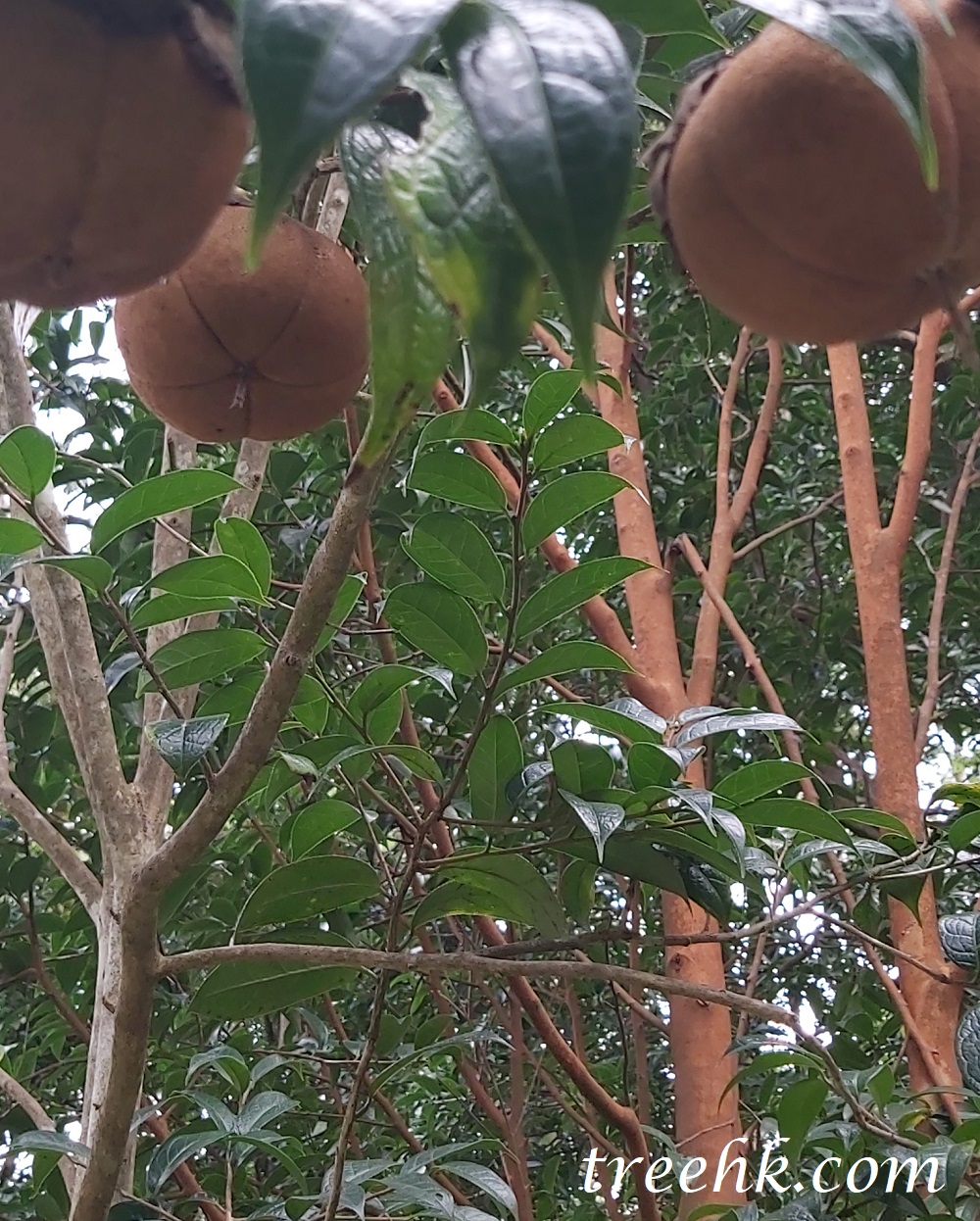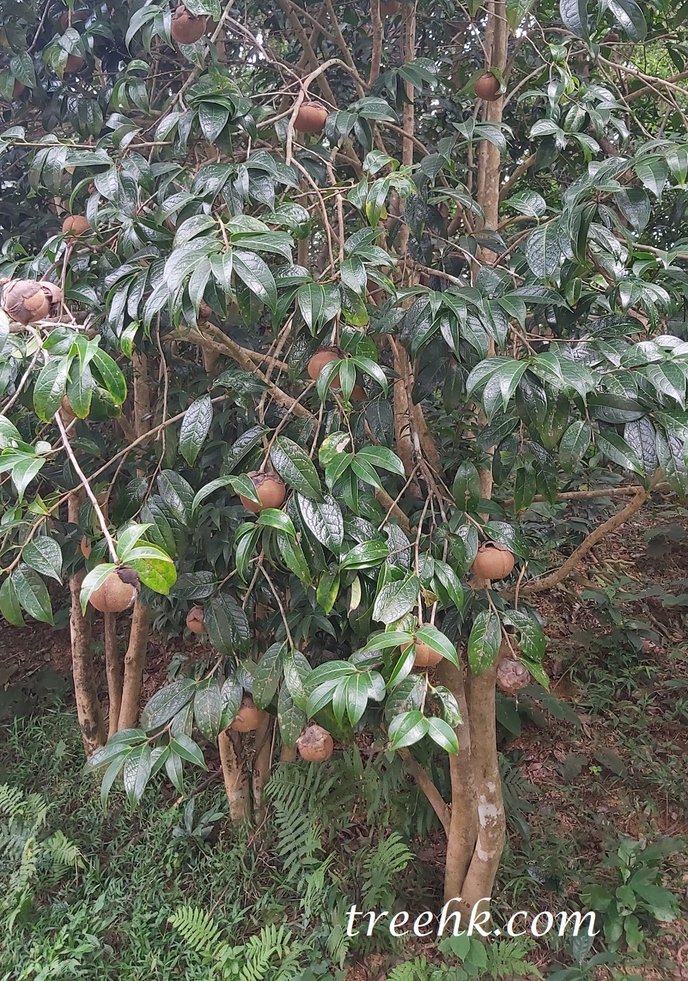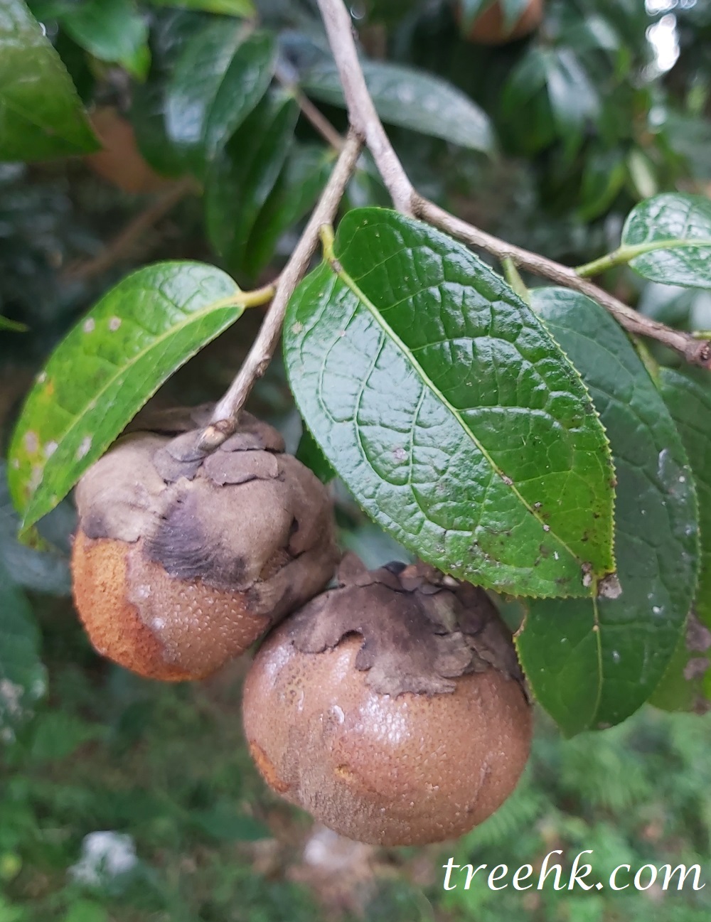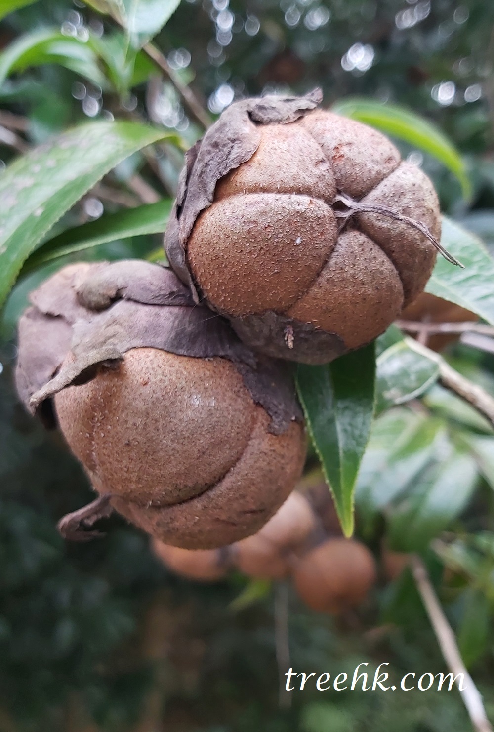 碩大堅硬紅褐色紅皮糙果茶蒴果,皮厚達2厘米。粟子般的種子藏在蒴果內,大約有9-15 顆。