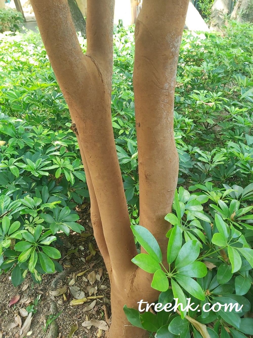 其次背後的樹幹皮色銹紅,接觸一吓,會殘留微小的粒狀銹红色在手指上,十分有趣。