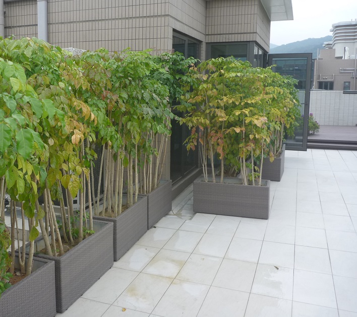 綠寶屬觀葉植物,生長快速荗密。常見用於籬笆分隔,可以遮光,減噪音和美化庭園。近來看見有人放他們在天台上,用來提高私隱度。雖然綠寶喜光,但長時間曝露在直照下,加上風吹,綠寶的健康情況不甚理想,除了急促落葉外,樹葉變得枯黃,更有被日照燒傷痕跡。