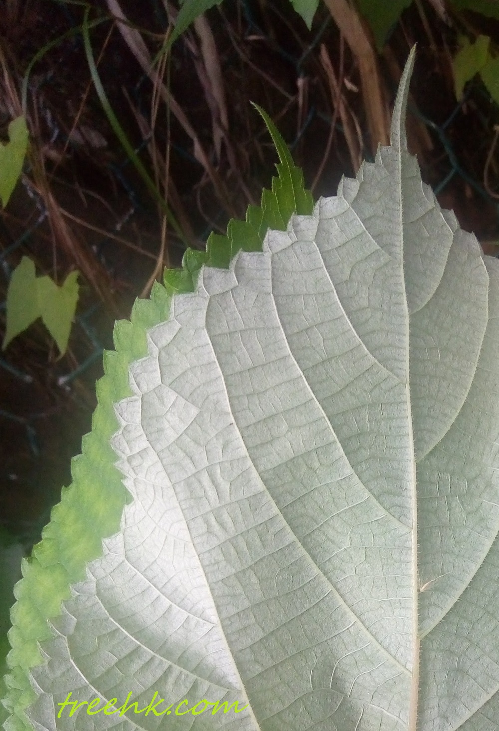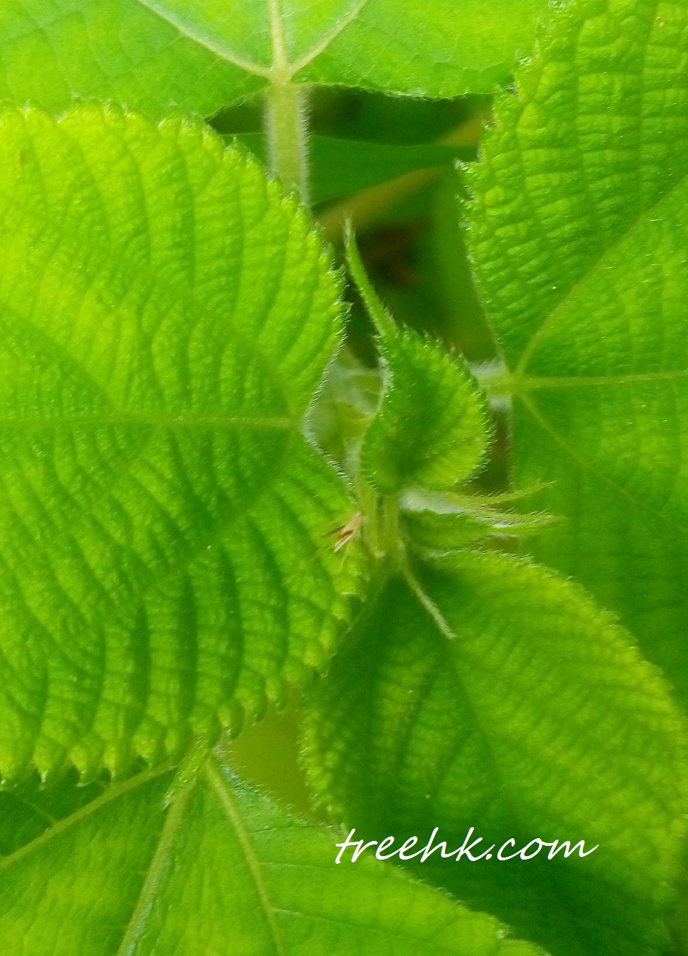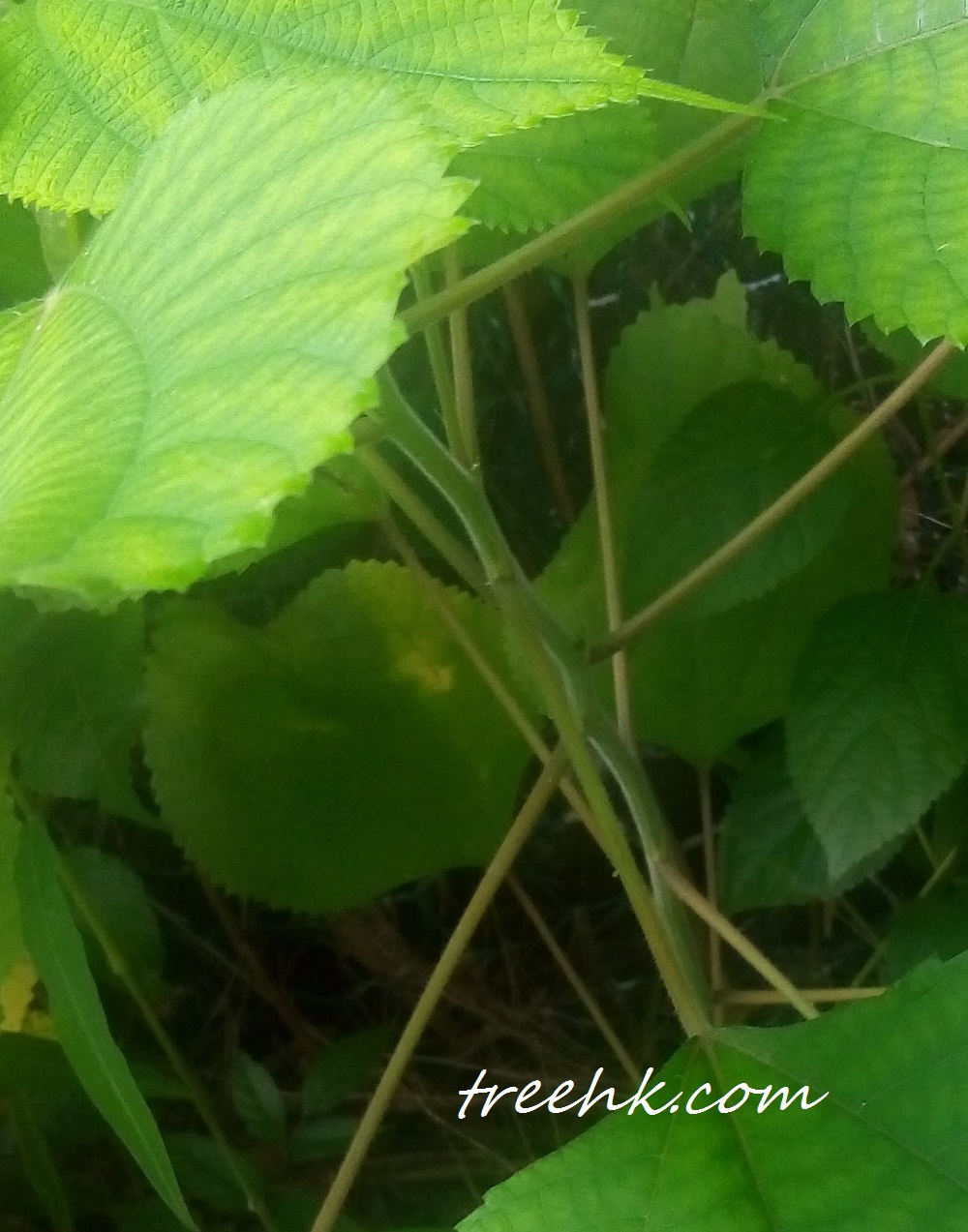 苧麻多分枝,小枝被柔毛。單葉互生,濶卵形或近圓形,是心形葉。,