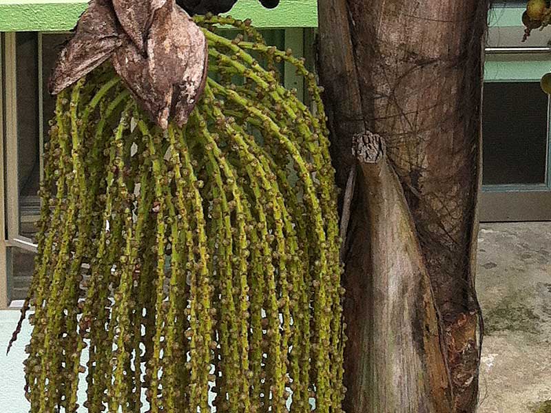 果序長達2~3米,每序有果數百粒,下垂於幹上。