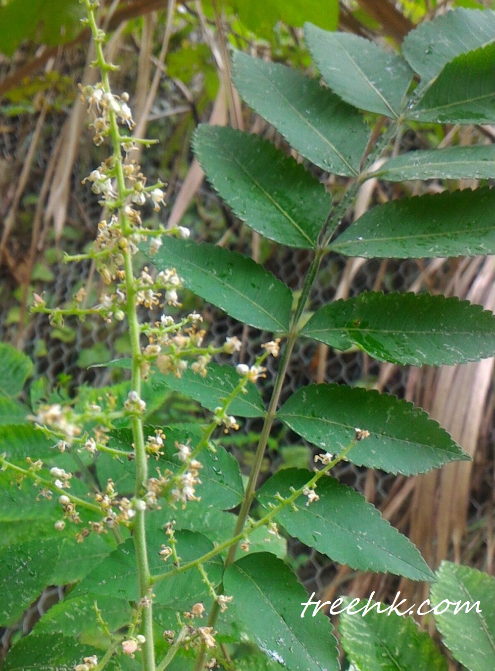 鹽膚木花期夏季,乳白色,廣圓錐花序,着生於枝頂,雌雄異株。