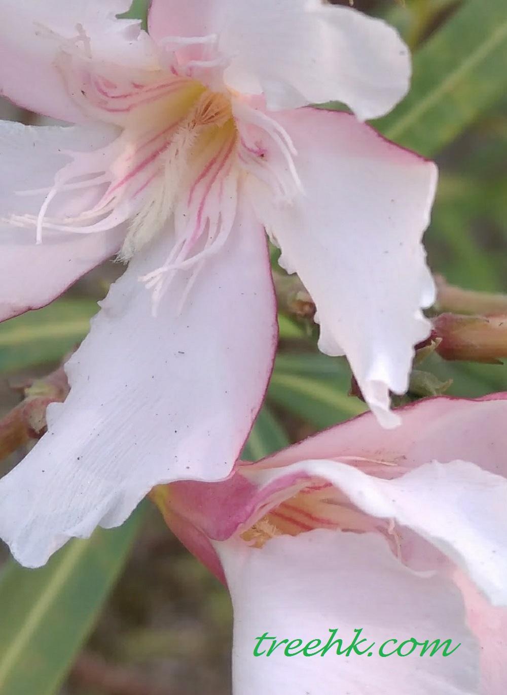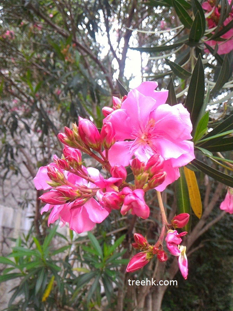 如果天氣配合,五六月間,香港黃花夾竹桃開得燦爛奪目,由於他是用作行道樹,所以走在炎熱的街上,你會不期然被星奌奌的小黄花站在一片長條綠間,小心除果肉外, 全株乳汁有劇毒可致命。普通夾竹桃的花多數是粉紅色、白色、及紅色 , Nerium-oleander L 夾竹桃比黃花夾竹桃葉子更大